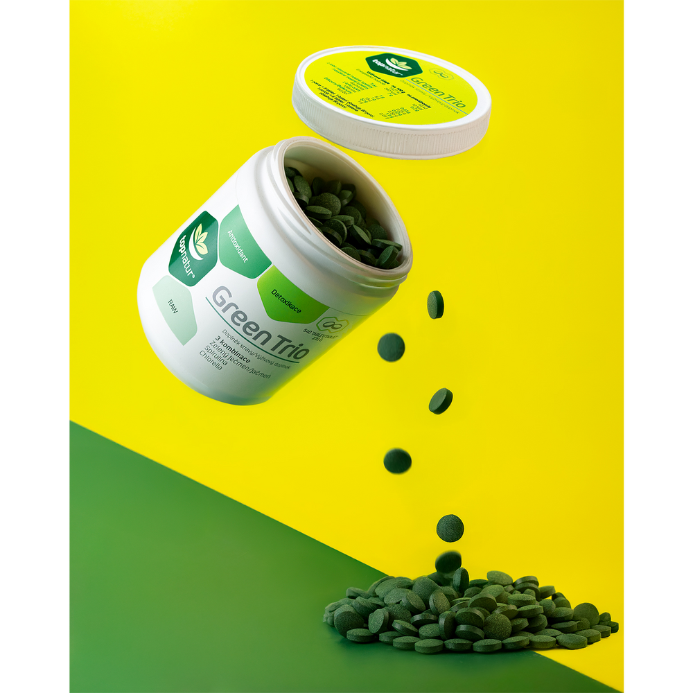 Green Trio je jedním z nejoblíbenějších produktů v našem sortimentu. Jedná se o produkt obsahující 3 superpotraviny v jednom. Green Trio obsahuje superpotraviny, které jsou skvělými antioxidanty, podporují přirozenou obranyschopnost organismu a také jsou skvělým zdrojem energie.