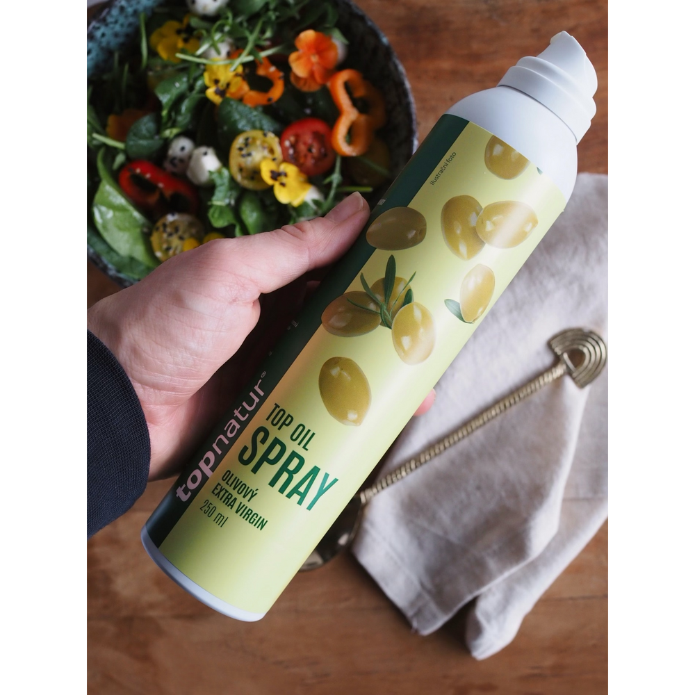 Olivový olej ve spreji je praktickým pomocníkem do každé zdravé kuchyně. Díky rovnoměrnému dávkování máte plnou kontrolu nad množstvím oleje, které při vaření, pečení nebo grilování používáte. 100% olivový olej extra virgin zachovává přirozenou chuť a vůni čerstvých oliv a dodá pokrmům jemnost i výživovou hodnotu.