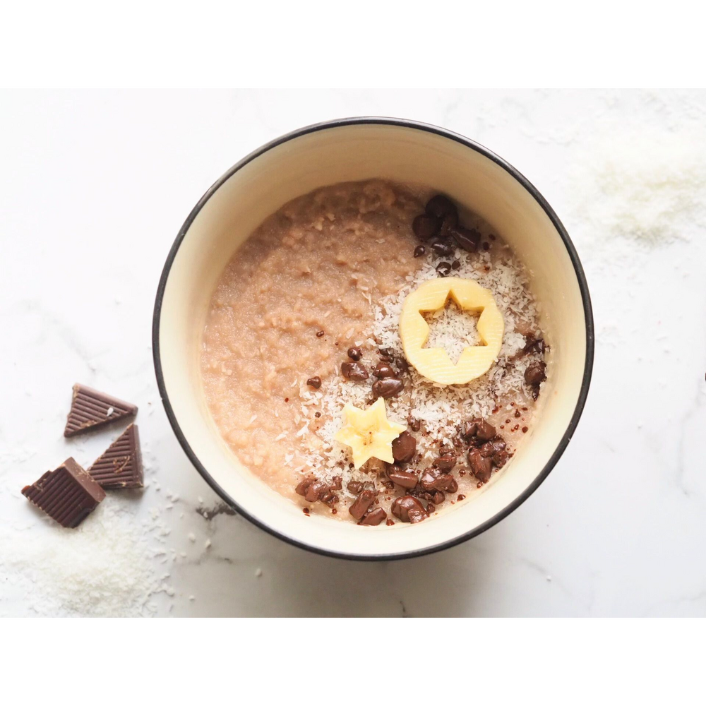 Milovníci kokosové chuti jásají nad touto kaší, která je vhodná jako snídaně stejně jako odpolední svačina.