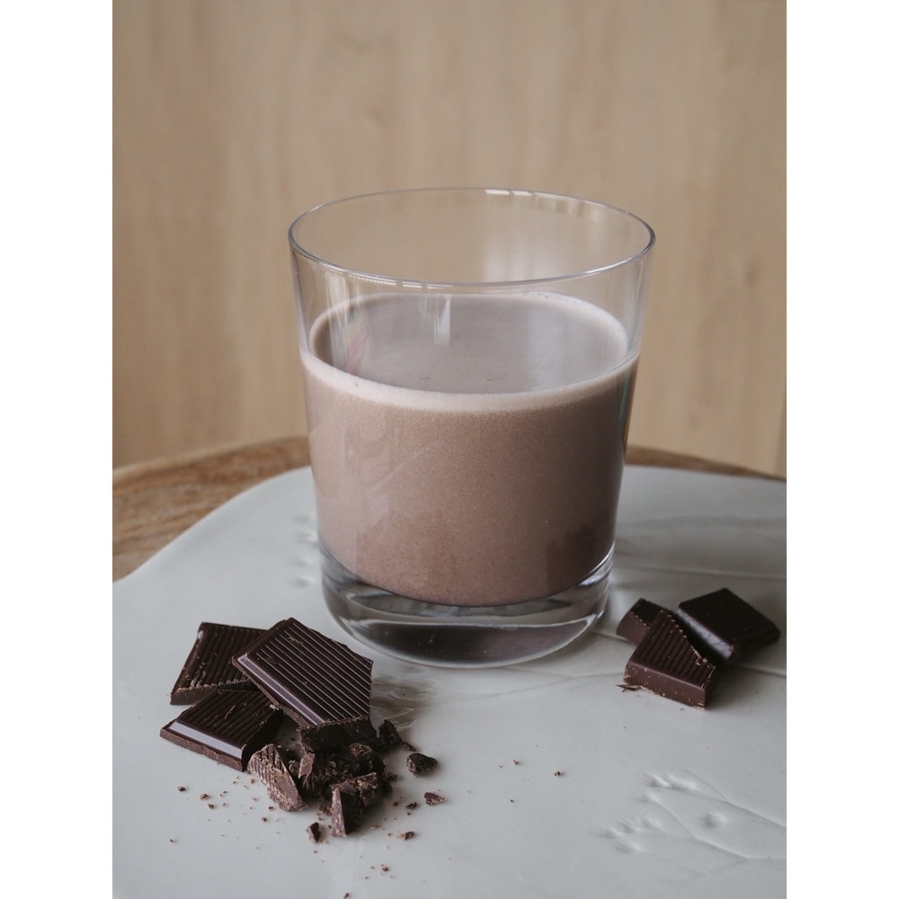 SYROVÁTKOVÝ proteinový koncentrát (MLÉKO), sušené plnotučné MLÉKO, inulin 6,7 %, aroma, kakaový prášek se sníženým obsahem tuku 2,7 %, vitaminový a minerální premix, stabilizátor: guarová guma, sladidlo: sukralóza