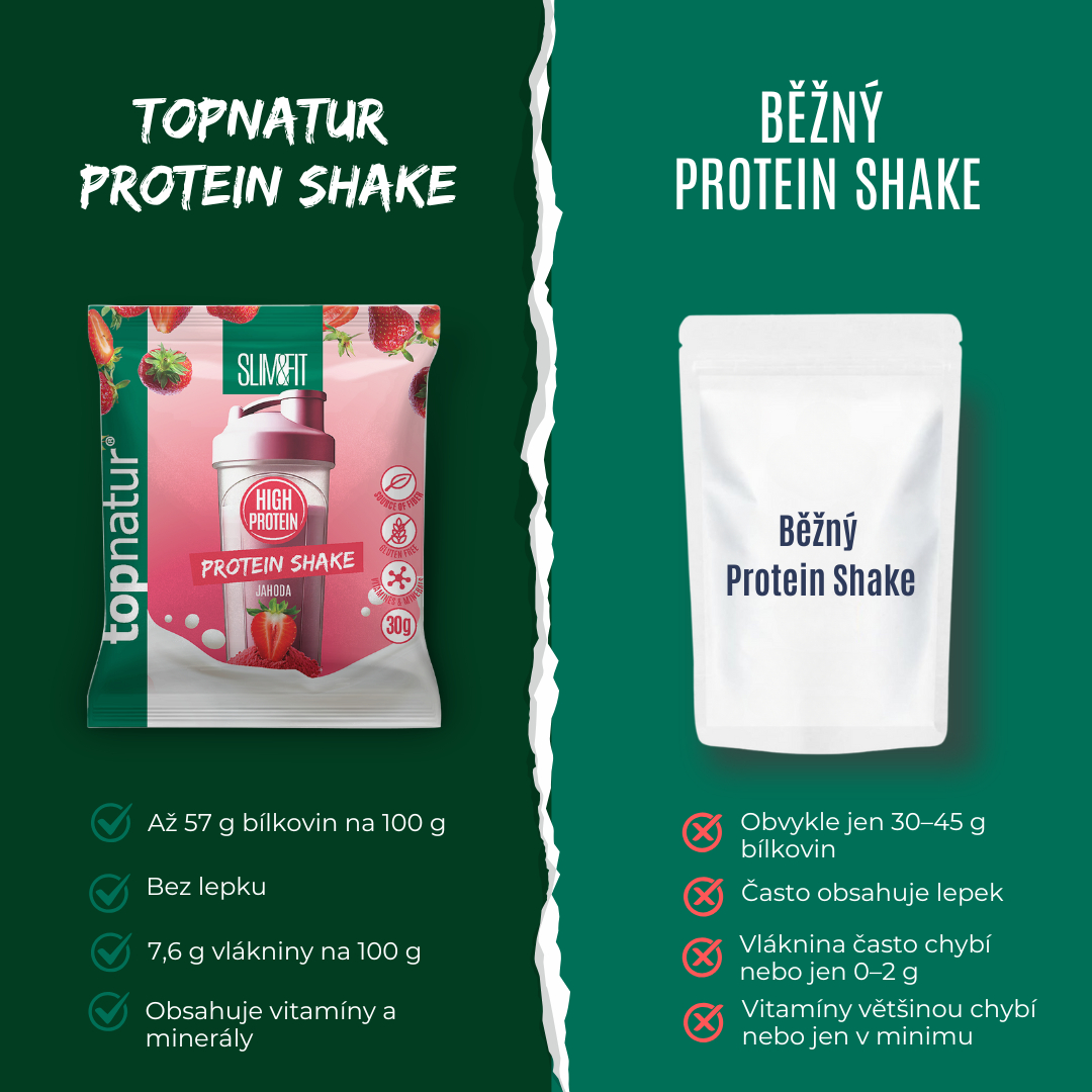 Slim & Fit jahodový shake zaujme svou výraznou a osvěžující chutí, která tě příjemně nakopne. Zároveň je napěchovaný vysokým obsahem proteinu pro svaly a dlouhodobé zasycení. Nechybí ani vitamíny, minerály a vláknina – pro kompletní výživu bez kompromisů.