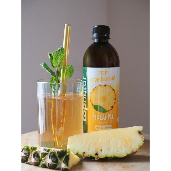 Objevte chuť tropů v každé kapce. Vychutnejte si TOP Kombucha Ananas a nechte se unést na vlně slunce, pohody a vitality.