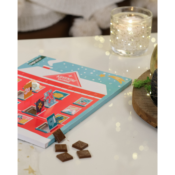Adventní kalendář s prémiovou belgickou čokoládou – 24 okének plných lahodných kousků, které vám každý den zpříjemní čekání na Ježíška.