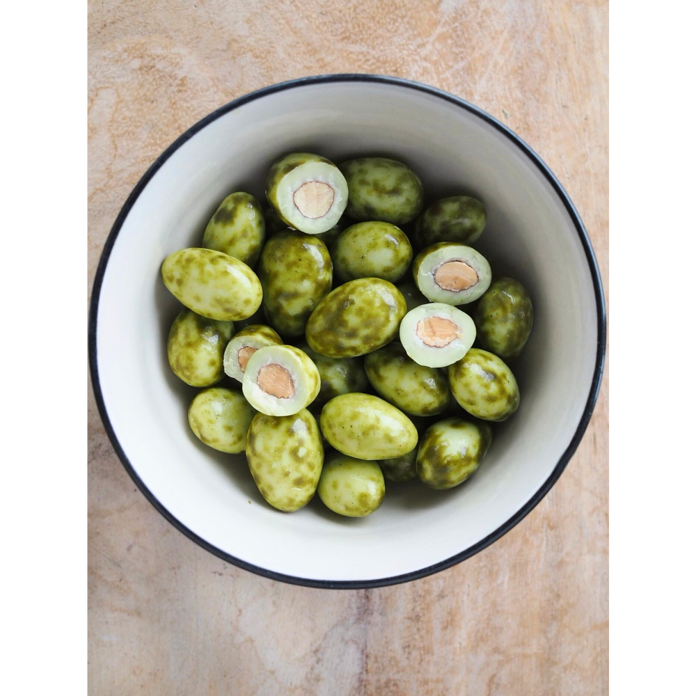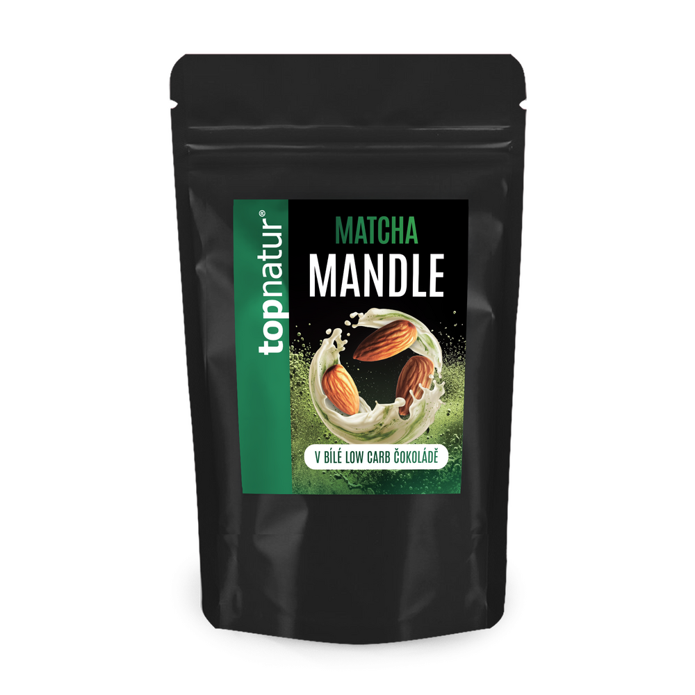 Spojenie matchy a bielej low carb čokolády vytvára jemne sladkú, harmonickú chuť s ľahkým čajovým tónom. Chrumkavé pražené mandle obalené v nízkosacharidovej čokoláde bez lepku potešia každého, kto hľadá vyváženú sladkú bodku počas dňa.