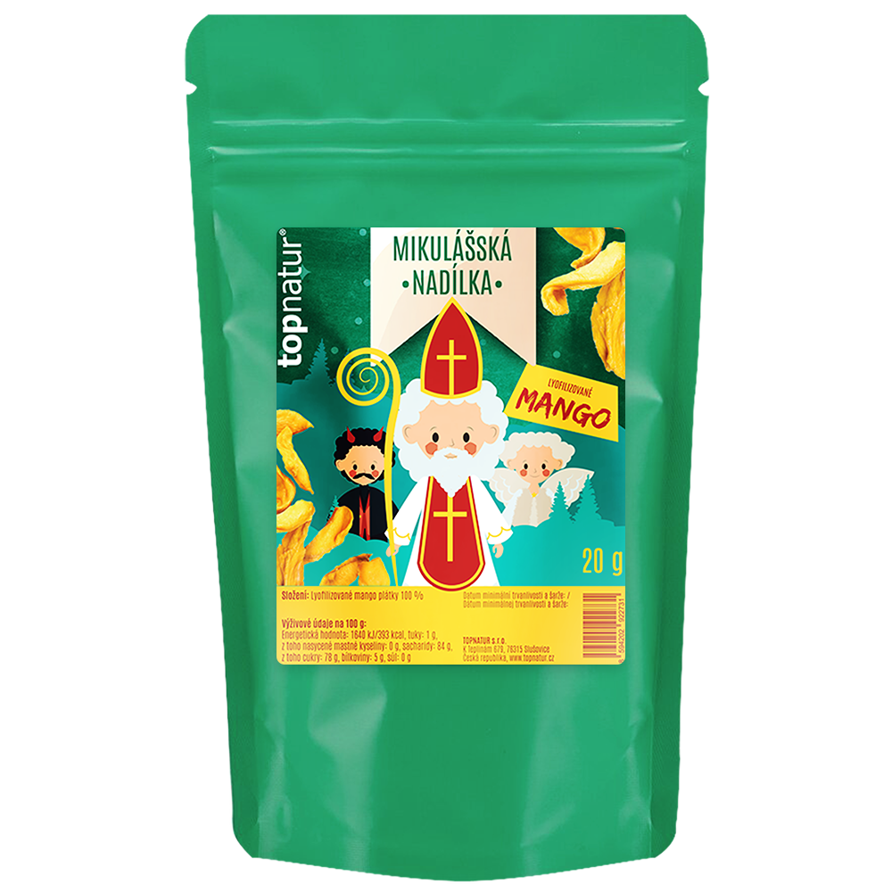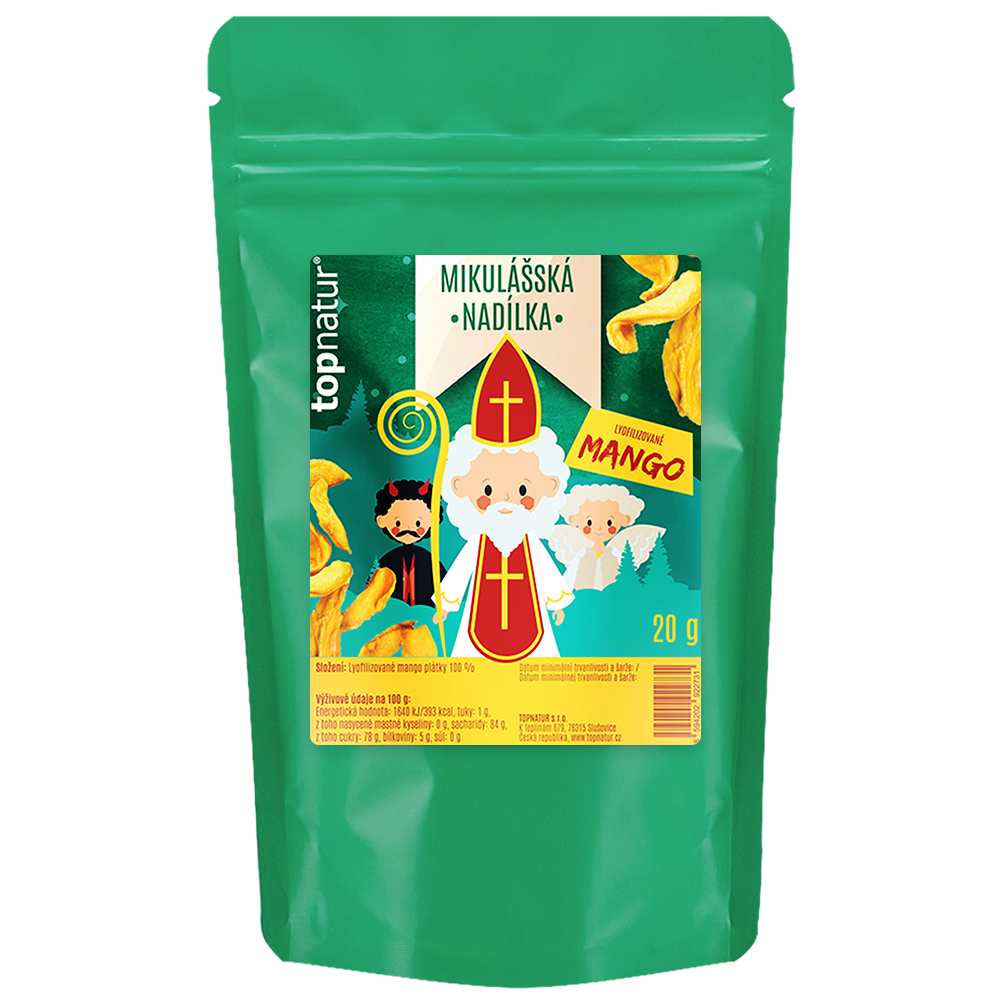 Prekvapte svojich najmilších exotickou Mikulášskou nádielkou! Naše lyofilizované mango je lahodná a zdravá pochúťka, ktorá si vďaka šetrnému sušeniu mrazom zachováva intenzívnu chuť aj všetky dôležité živiny. Bez pridaného cukru a konzervantov, len čisté mango v chrumkavej podobe, ktorú si zamilujú deti aj dospelí. Či už na cesty, do školy alebo ako desiata, táto tropická radosť je pripravená byť vždy po ruke.