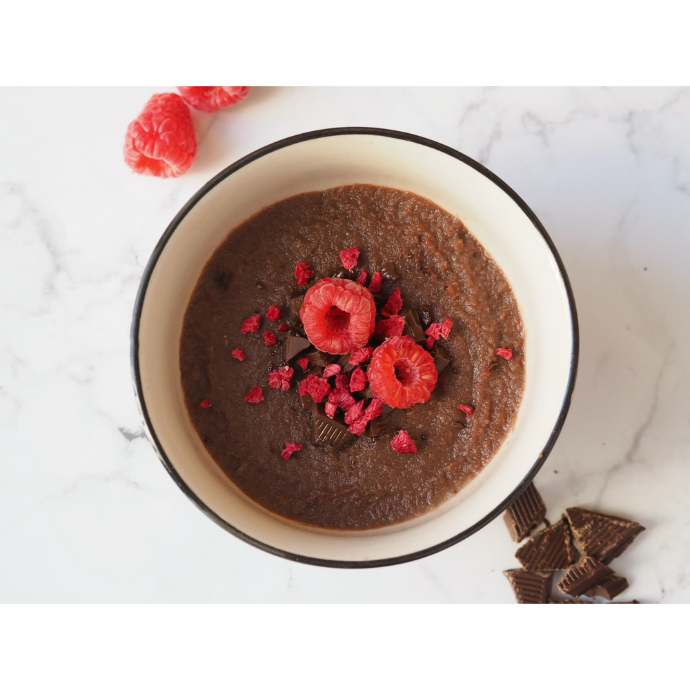Instantné ryžová múka 25%, hrachový bielkovinový koncentrát 20%, kokosový tuk, sušený glukózový sirup, trstinový cukor, inulín 6,4%, natívny kukuričný škrob, čokoláda horká 5% (cukor, kakaová hmota, kakaové maslo, emulgátor: slnečnicový lecitín, prírodná vanilková aróma), kakaový prášok so zníženým obsahom tuku, probiotické kultúry 6 kmeňov * (množstvo 5 miliárd na 1 porciu); vitamínový a minerálny premix, sul, regulátor kyslosti: kyselina citrónová, emulgátor: E472e (rastlinný pôvod), stabilizátor: E340, protihrudkujúca látka: E551, aróma.
