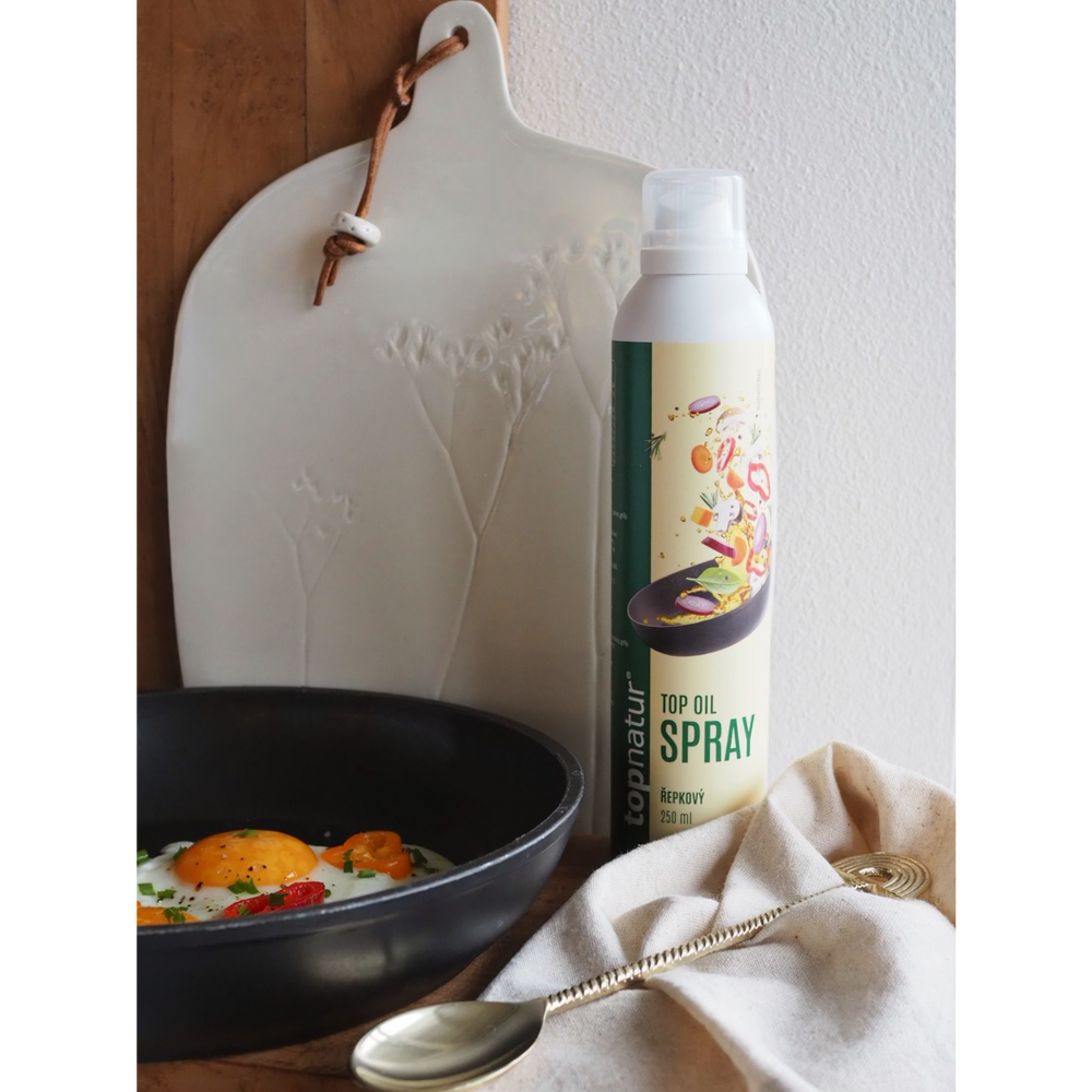 Repkový olej v spreji je moderný a praktický pomocník do každej kuchyne. Umožňuje jednoduché, úsporné a rovnomerné nanášanie oleja bez preliatia a mastných rúk. Stačí len jemne postriekať a získaš dokonalú kontrolu nad množstvom tuku, ktoré pri varení alebo pečení používaš.