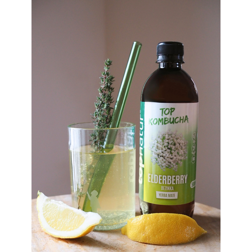 Objavte silu prírody v každej kvapke. Vychutnajte si TOP Kombucha Bezinka a nechajte sa unášať na vlne rovnováhy, čistoty a jemnej elegancie.